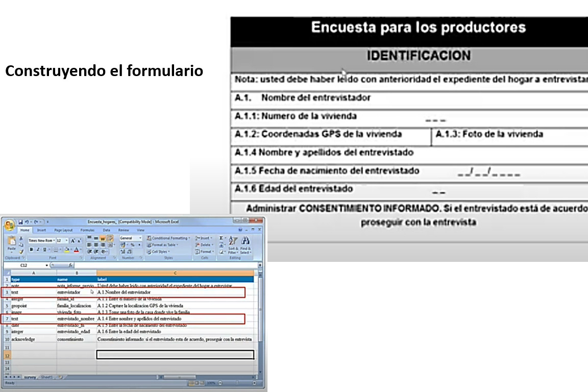Construccion de un formulario basico con ODK. Incluye:Pasos a seguir en la construccion del formulario (XLSF...