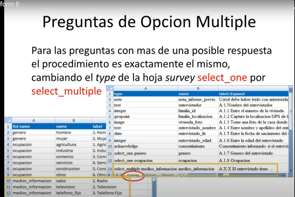 Sintaxis XLSform (II) Preguntas de opcion multiple, Estructuras de control y Salto