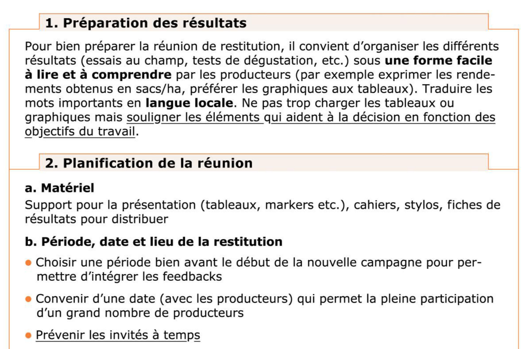 Methodes Participatives Pour L’amelioration Varietale Du Sorgho Et Du Mil: Restitution des résultats d’essais aux producteurs et décisions/planification des essais du cycle suivant