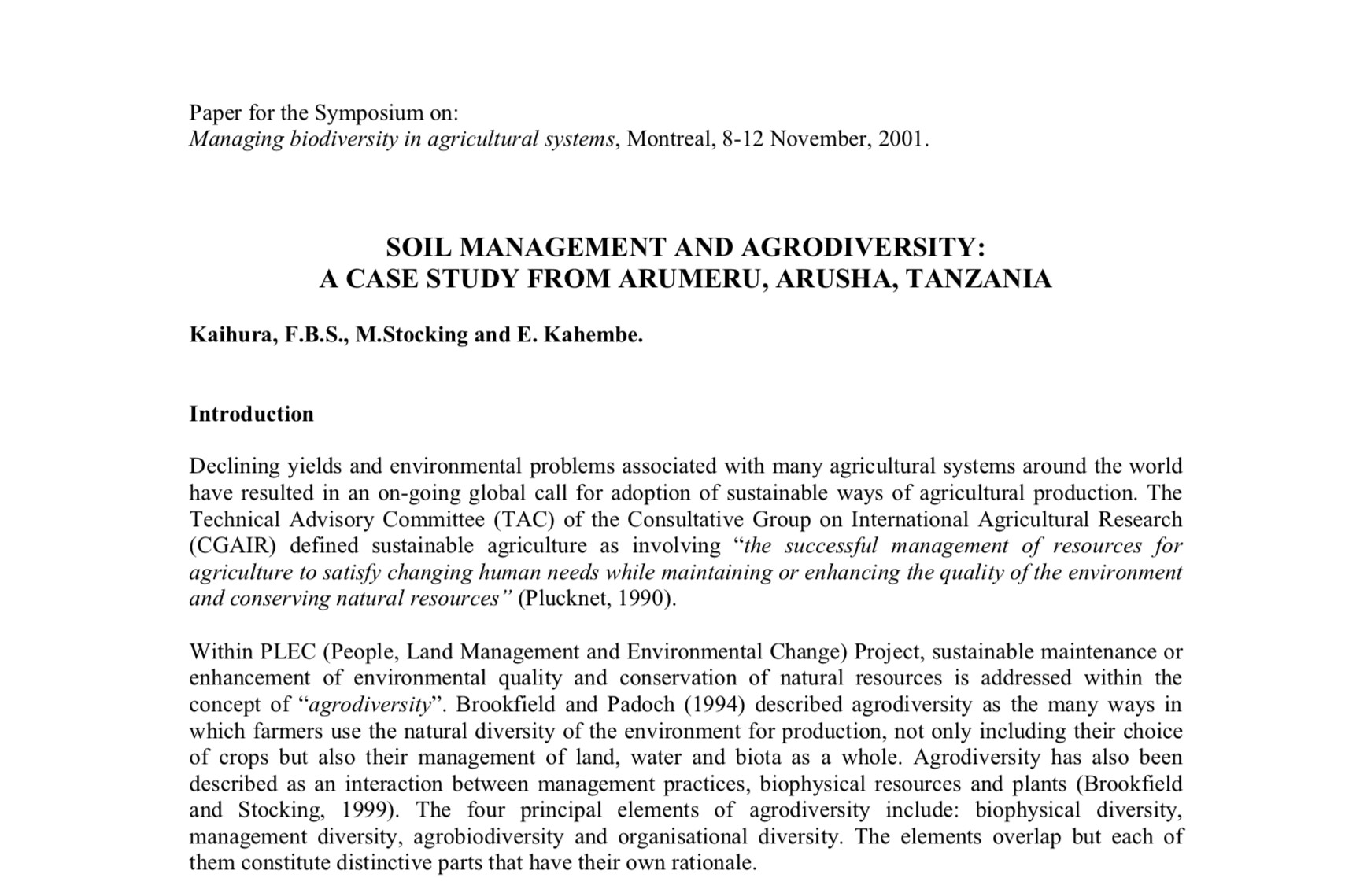 Soil Management And Agrodiversity: A Case Study From Arumeru, Arusha, Tanzania