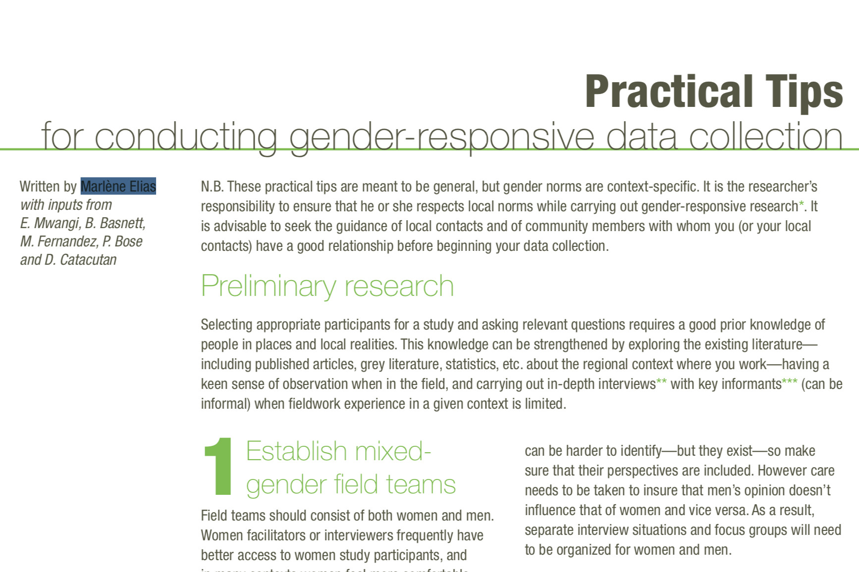 Practical Tips for conducting gender-responsive data collection