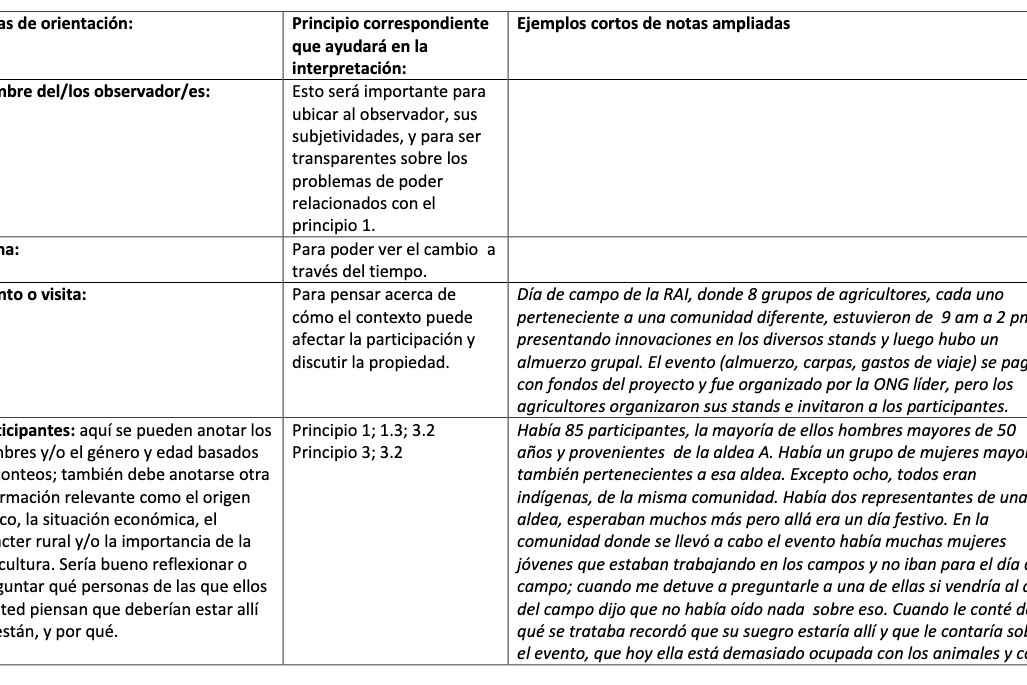 Una guía de CCRP sobre cómo conducir y registrar información de observaciones como parte del apoyo a las Redes...